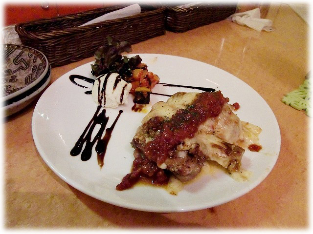 かな: ナスは全部たかぼんが、チーズの美味しい所はかなちゃんが食べました。目の前で、かなちゃんの大好物テキーラ・サンライズを作ってくれたお兄さんも印象的でした!お手洗いは、狭いながらも清潔だし、女性に嬉しい配慮がたくさんなされてて、素晴らしいなと思いました!