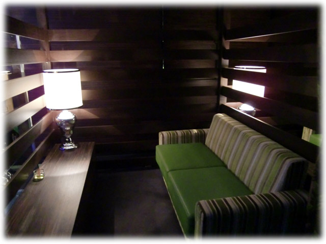 かな: おしゃれかなぁ?同じ系列の森之湯WOOODSはお洒落だったけど。ここは、椅子のせいで冷蔵庫が開かないし、出っ張った壁のせいでベットからTVが見にくいし、部屋の構造上、エアコンの風がベットまで来ないんだもん。